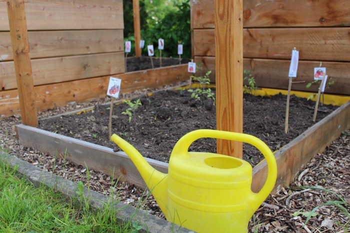Im neu angelegten Schulgarten betreuen die Schüler verschiedene Obst- und Gemüßekulturen, welche anschließend geerntet und verarbeitet werden.
